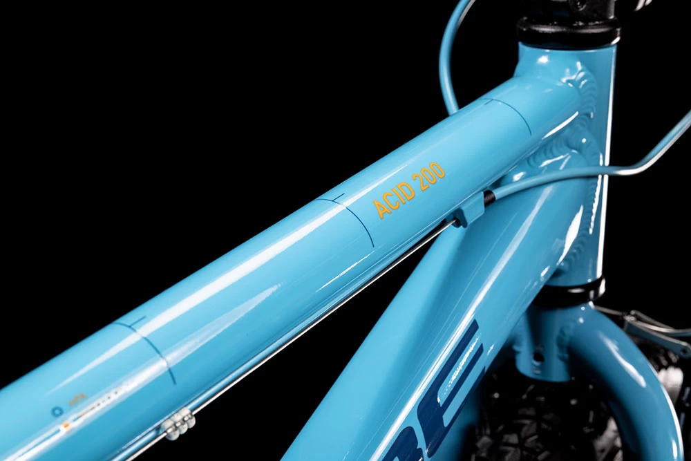 The Acid 200’s heat-treated, 6061 aluminium frame has the same quality and durability as CUBE full-size mountain bikes. It’s light and strong, thanks to a curved and formed down tube that’s tailored specifically to a young rider’s weight. V-brake bosses front and rear are just the same as you’ll find on mum or dad’s bike. And, because we know that accidents can happen, we fitted a replaceable derailleur hanger – so that an unexpected tumble doesn’t write off the frame.