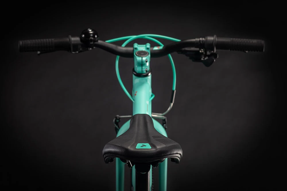 We chose a Microshift 9 speed 11-42T cassette for an extended gear range, so your junior mountain biker will have the confidence to tackle even more challenging climbs. A thinner handlebar and grips make it easier for small hands to hold on, steer and brake. And grippy tyres, powerful brakes and safe handling round out a package that your young rider will love.