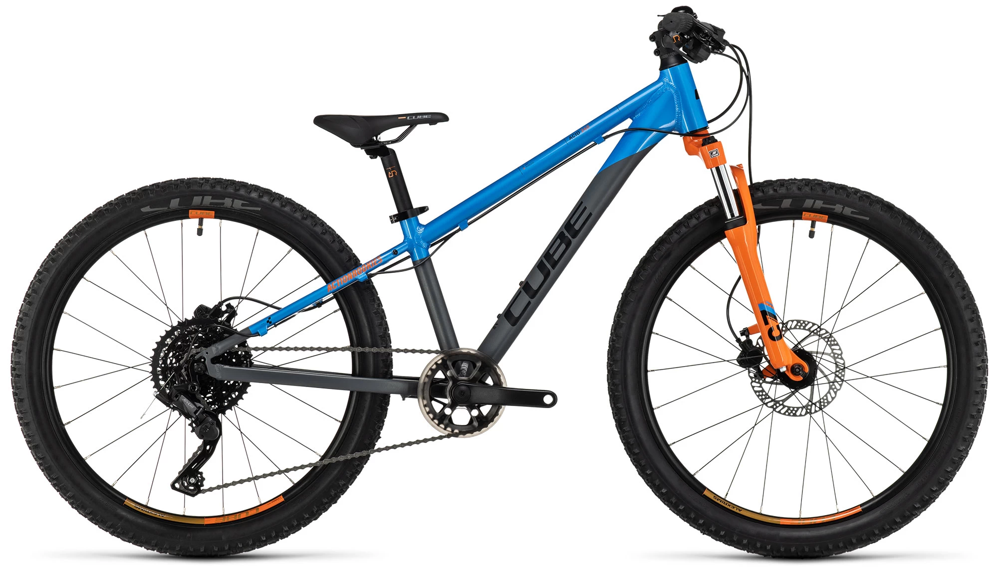 Built from the same heat-treated 6061 aluminium tubes as the adult bikes, the Acid 240 Disc Allroad’s frame is every bit as tough as a full-size mountain bike but with the right weight and proportions for a child, and with disc mounts for the added reassurance of safe all-weather braking. There’s a bottle mount for mid-ride refreshment and rack mounts, too. The handling is designed to be both fun and confidence-inspiring. And, because CUBE knows accidents can happen, they have made the gear hanger easily replaceable so that a knock or crash needn’t result in an expensive repair.