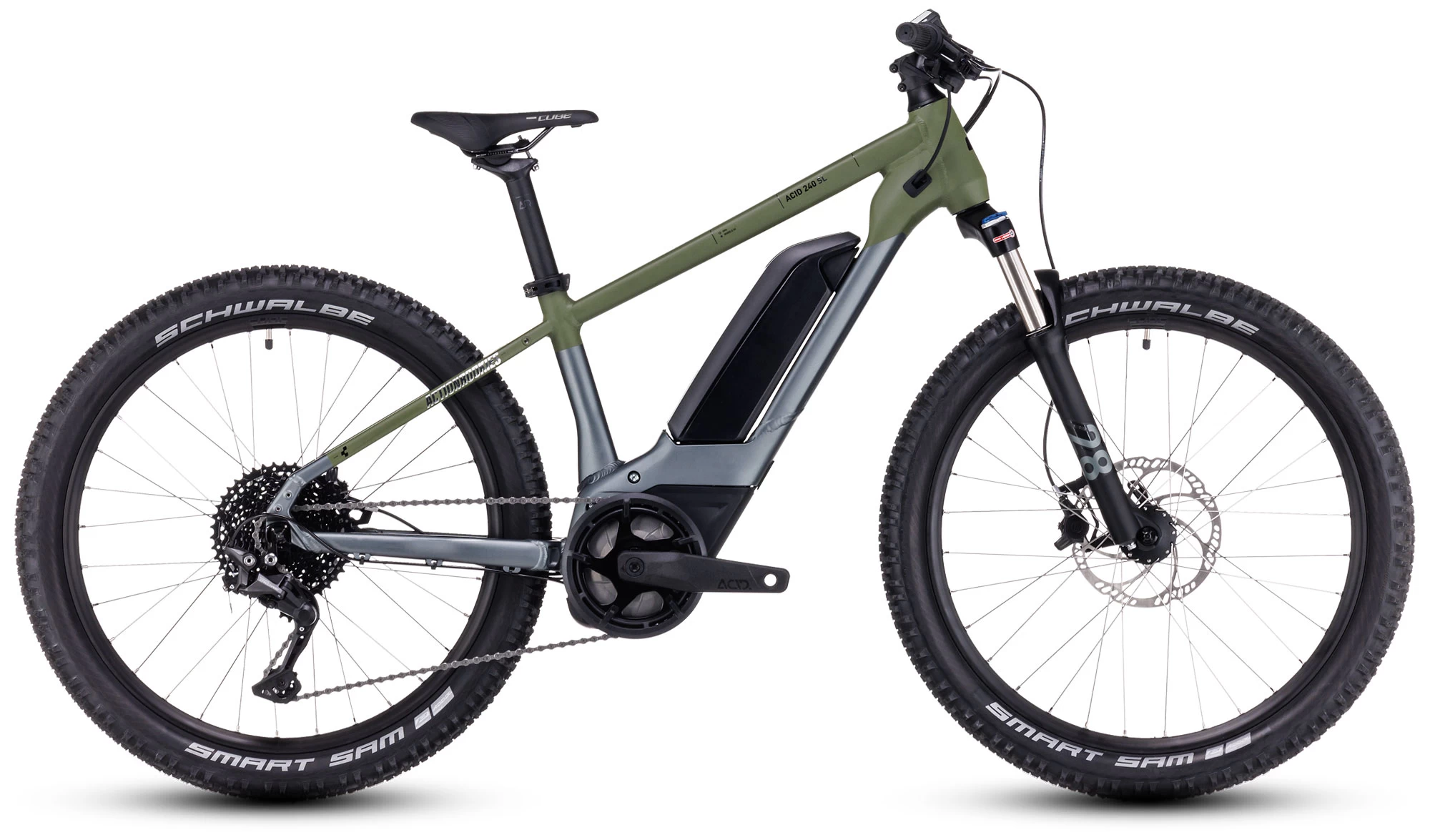 It’s fair to say that Bosch didn’t have perfectly proportioned kids’ bikes in mind when they designed their world-beating drive systems, but that hasn’t prevented us from neatly integrating it into the Acid 240 Hybrid Rookie’s frame. Using the same design and construction techniques as the adult hybrid mtbs, Cube has built a junior hybrid that’s both fun to ride and safe as well. Internal cable routing significantly reduces maintenance, and they’ve even included mounts for a CUBE kickstand.