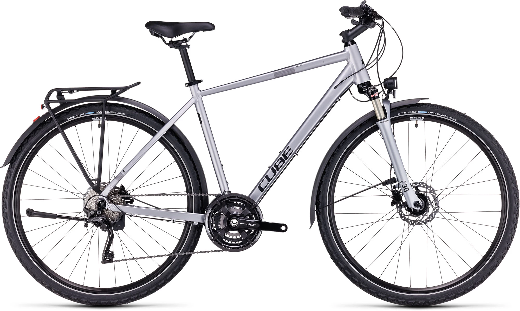 Don’t be fooled by the classically elegant lines – the CUBE Nature EXC Allroad packs a powerful technological punch. From the Smooth Welding frame joints to its smooth, air-sprung suspension fork, it’s all designed to transport you in comfort and style. And, with a full complement of accessories included, you can even take your world with you for the ride.