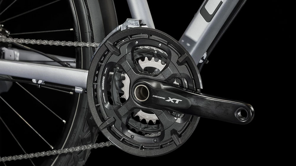 Whether you fancy exploring off the beaten track or need a way to get around town, the CUBE Nature EXC will help you get to where you’re going. The comfortable, easy-to-adjust Suntour air suspension fork is just what’s needed to smooth potholed road surfaces, while wide-ranging Shimano 3×10-speed gears and powerful hydraulic disc brakes put you in full control. And the sturdy luggage carrier, mudguards, handy kickstand and built-in lighting system mean you’re ready for anything.