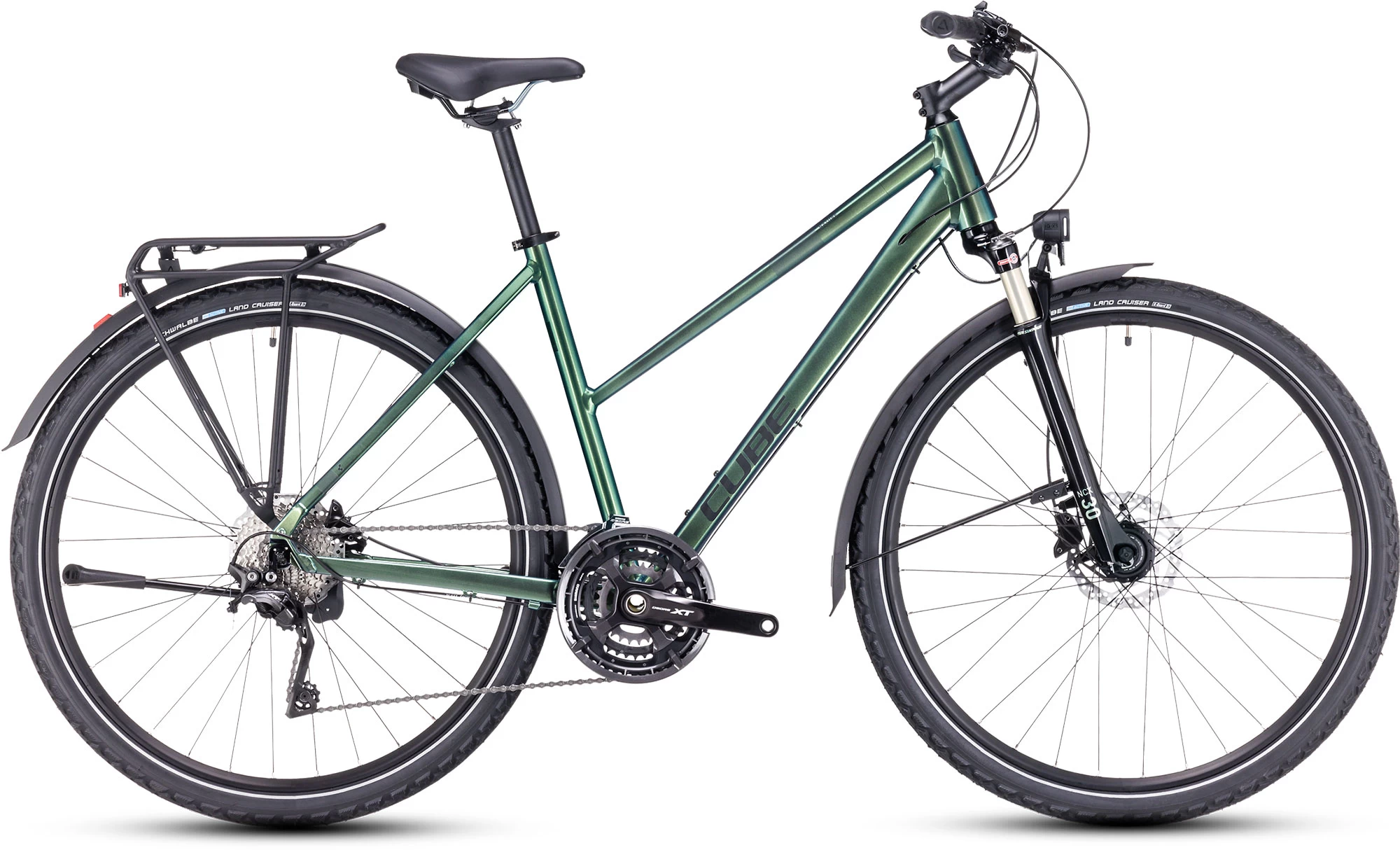 Whether you fancy exploring off the beaten track or need a way to get around town, the CUBE Nature EXC will help you get to where you’re going. The comfortable, easy-to-adjust Suntour air suspension fork is just what’s needed to smooth potholed road surfaces, while wide-ranging Shimano 3×10-speed gears and powerful hydraulic disc brakes put you in full control. And the sturdy luggage carrier, mudguards, handy kickstand and built-in lighting system mean you’re ready for anything.