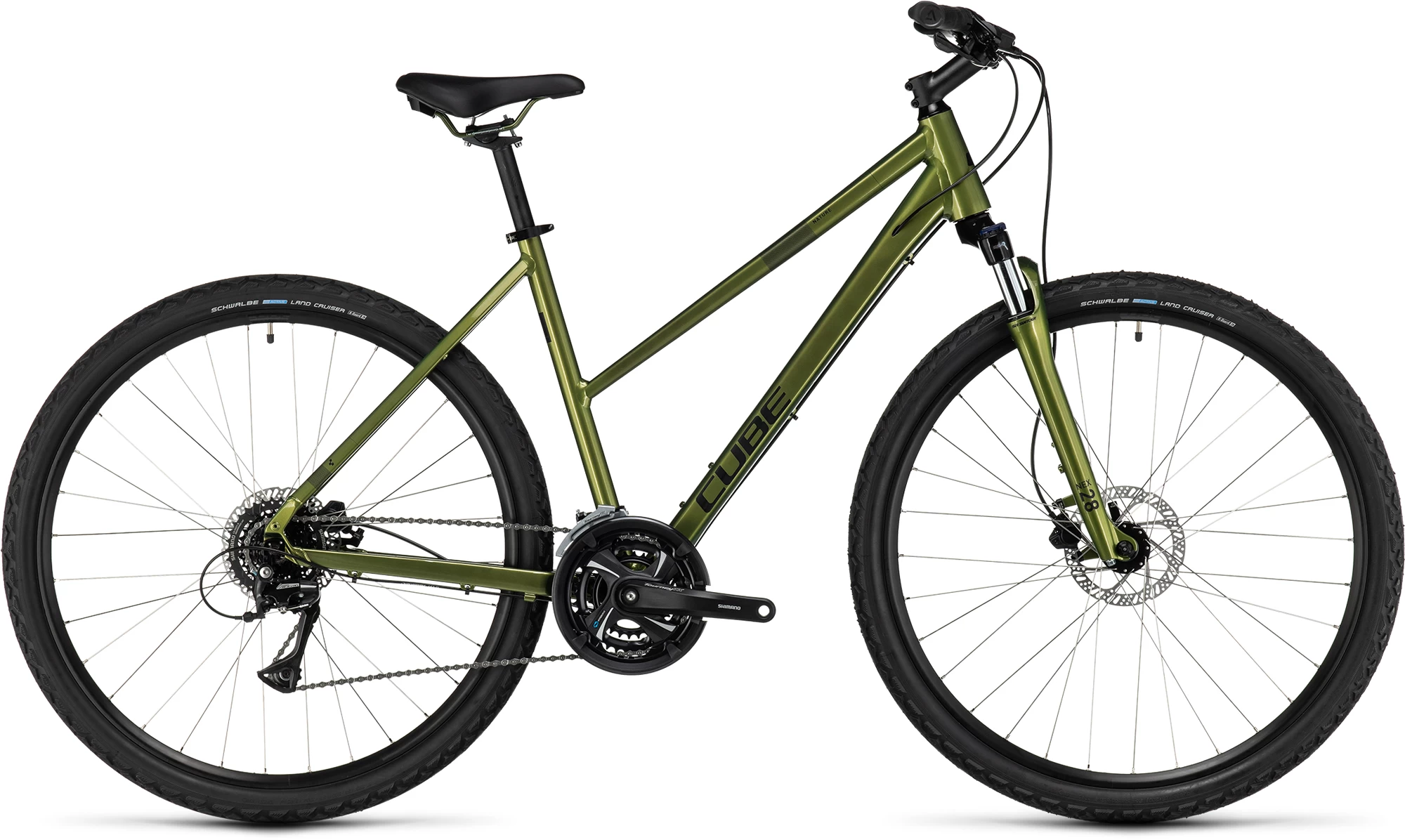 The Nature is all about freedom on two wheels, whether that means getting around town or exploring further afield at the weekends. Built with comfort and reliability in mind, CUBE has equipped it with a Suntour suspension fork to help take the edge off even the roughest of road surfaces. Shimano’s easy-to-use 3×8 gear system has the range to make light work of any route. And powerful all-weather hydraulic disc brakes give you the reassurance of safe stopping in any conditions. Where will it take you next?
