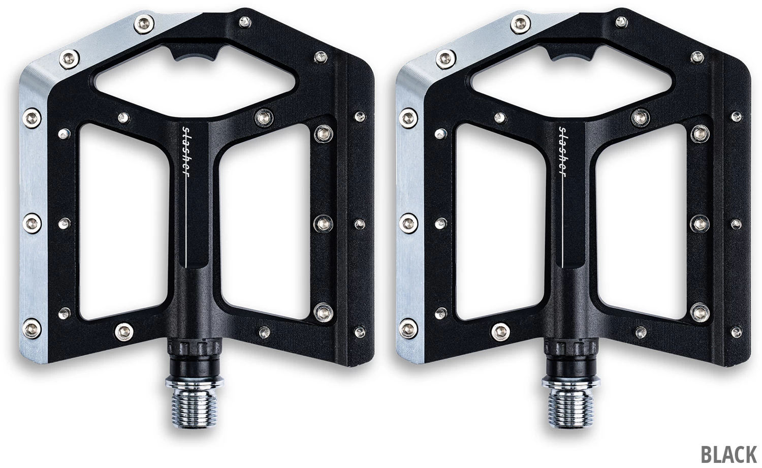 Pédales Slasher de CUBE – Le point de mire de chaque vélo. Avec son décapsuleur intégré, cette pédale plate nouvellement conçue et légère est sans aucun doute le point fort sur et après chaque tour. Mais la Slasher a encore bien plus à offrir. Le profil ultraplat permet de réduire le poids et, grâce aux bords biseautés, d’augmenter la garde au sol dans les virages. Le corps en aluminium à triple palier de la pédale plate convainc par un usinage CNC two tone complexe et 10 pins interchangeables par côté.