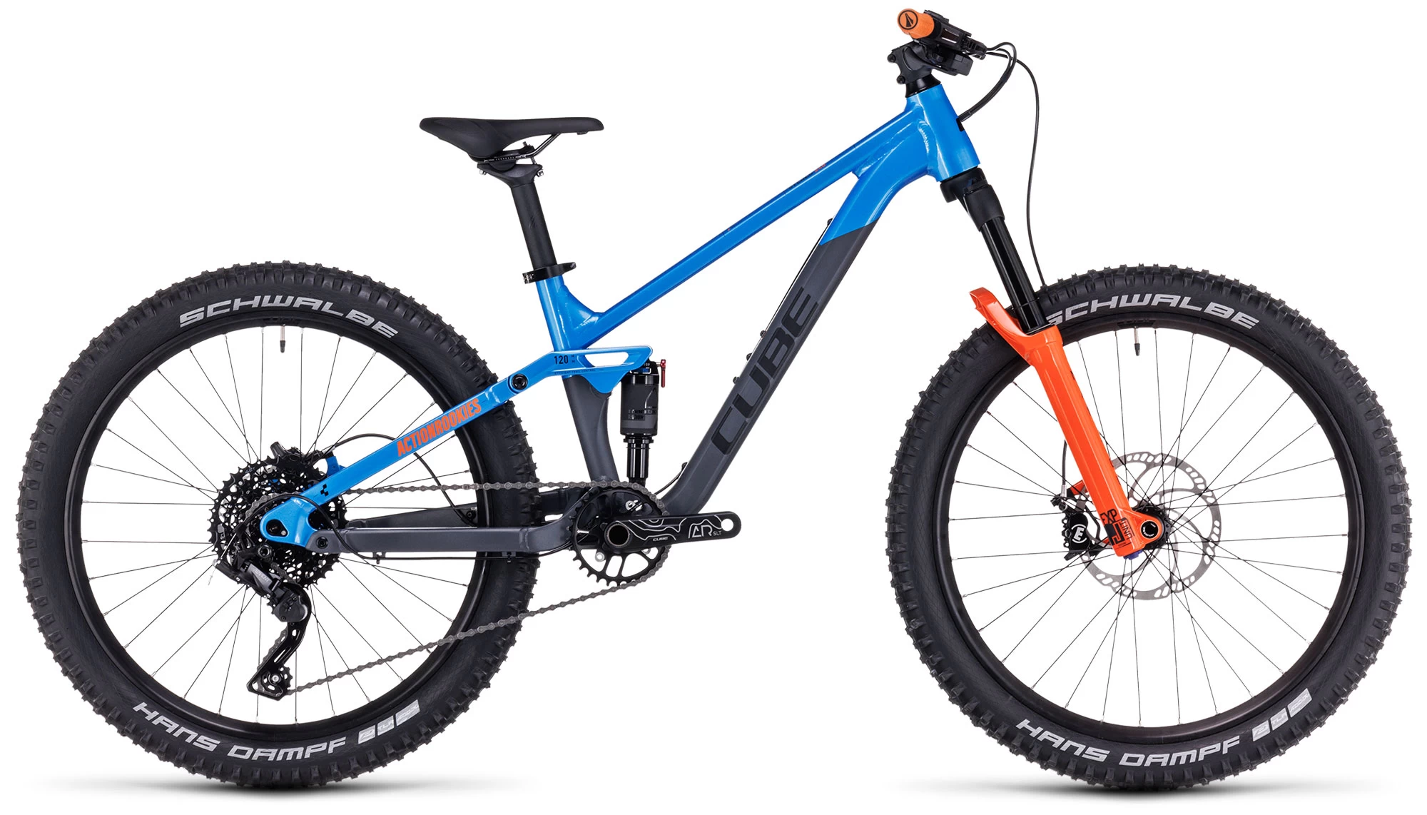 Loads of experience goes into every CUBE frame – and the Stereo 240 Pro is no exception. The wheels may be smaller than other full-suspension bikes, but the attention to detail is just as thorough. CUBE has the same kind of butted-aluminium tubes as the full-size bikes, and apply the same suspension kinematics. There’s a replaceable gear hanger so that the inevitable crashes don’t result in an expensive frame repair, and it’s all passed the strict in-house safety tests with flying colours – so you know it’s not just a fun ride, but a safe one too.
