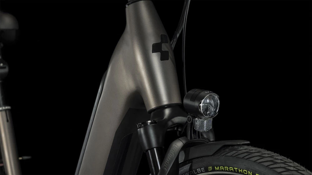 Sometimes, only the best will do. For brand-new Supreme Sport Hybrid SLX, Cube began with Bosch’s powerful, smooth, fourth-generation CX motor. Combined with a 625Wh battery and the slick shifting and huge range of Shimano’s peerless XT 1×12 transmission, it ensures you’ll be able to make light work of any journey. The RockShox Paragon Gold air suspension fork, 50mm Schwalbe Marathon E-Plus tyres and suspension seatpost smooth out the roughest of city streets.