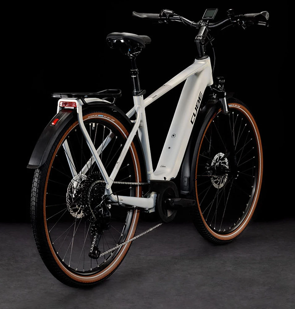 Cube made our Touring Hybrid to be versatile, easy to live with and comfortable. The powerful Bosch Performance motor with Bosch Smart System and PowerTube battery are all so neatly integrated into the design, you’ll barely notice they’re there – apart from the extra help at the pedals, of course. Revised Efficient Comfort Geometry centres around a 63mm travel suspension fork for comfort and control, even on rough roads. The IC 3.0 integrated carrier is full of neat design touches to make load carrying simple, and the seat clamp even has a hidden tool in its lever. Add the new ACID chain guard, kickstand and full-length mudguards and you’ve got everything you need. And, with a choice of classic Men’s, Trapeze or Easy Entry frame designs, there’ll be a style and size that’s perfect for you.