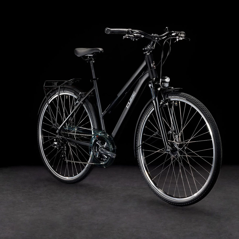 The heart of the Touring is its high-quality, low-weight, double-butted aluminium frame. Designed with our Efficient Comfort Geometry to make light work of even long days in the saddle, it’ll surprise you with its nimble and intuitive handling. All frame variants of the CUBE Touring feature the exceptionally neat luggage carrier and gear cables routed inside the down tube, for long-lasting accurate gear shifts with minimal maintenance.