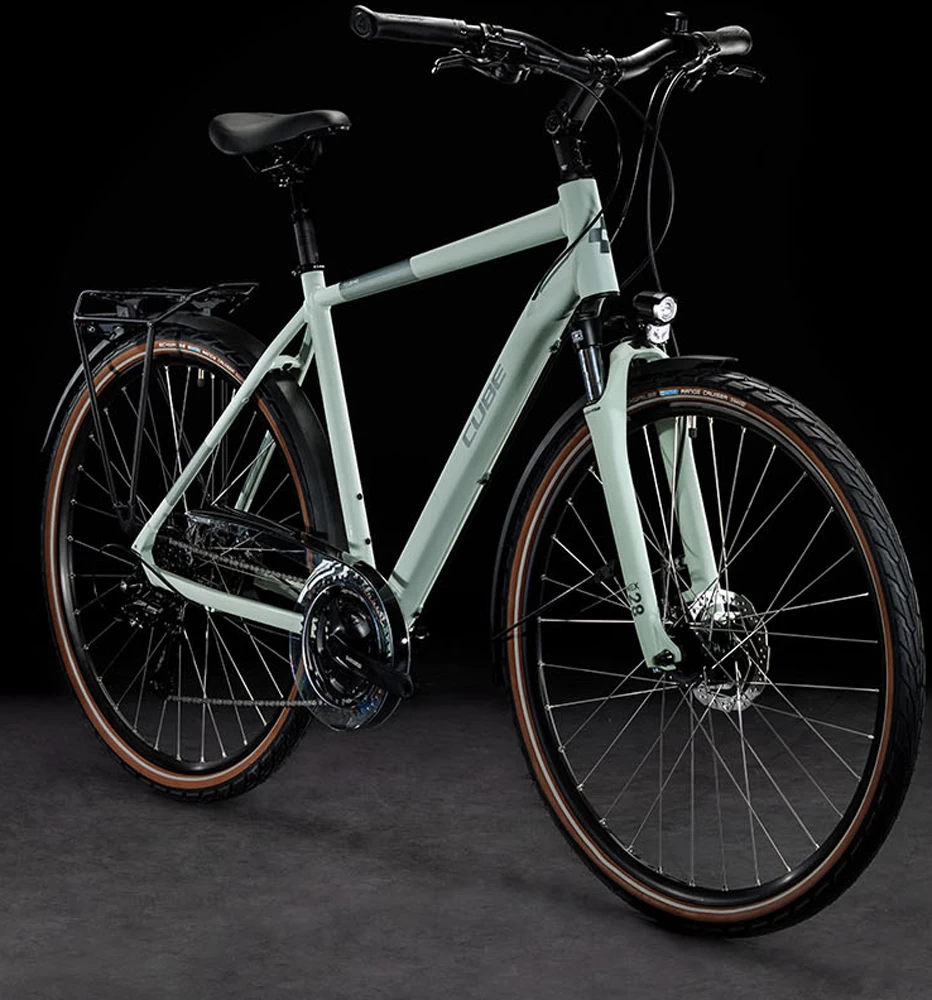 The Cube Touring ONE’s full equipment package and comfortable design is all you need to broaden your riding horizons. Easy-to-use 3×8 Shimano gears make light work of any route by putting gear selection literally at your fingertips. Powerful disc brakes work better than standard brakes in the wet, for safer stopping.